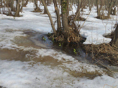 石狩の春の風物詩は、ハクチョウの他にマクンベツのミズバショウやカタクリなどの林床植物群がありますが、こちらはまだまだ雪の下。
